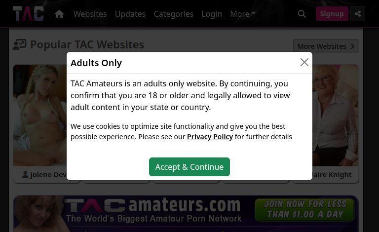 TACAmateurs isn’t just a single site—it’s a network of hundreds of sites. With your subscription, you get access to a variety of content, from MILFs and Cougars to BBW and even some trans sites. There are around 100 sites in categories like Mature and Granny Porn, plus plenty for fans of younger models and niche interests.